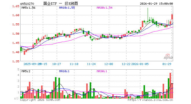 1月29日国企ETF(510270)份额增加100.00万份, 最新份额1983.21万份, 最新规模3172.74万元